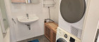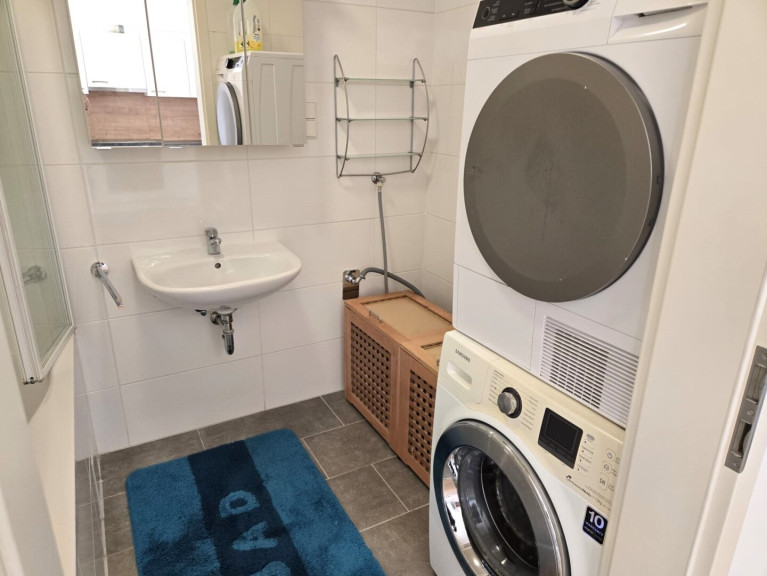 Die Wohnung ist möbliert und kann auch so übernommen werden. Unter anderem ist sie ausgestattet mit einem großen Wandschrank und einem Doppelbett im Schlafzimmer, einem Esstisch mit 4 Stühlen und einigen weiteren Schränken. Im Badezimmer befinden sich eine Waschmaschine und ein Trockengerät.