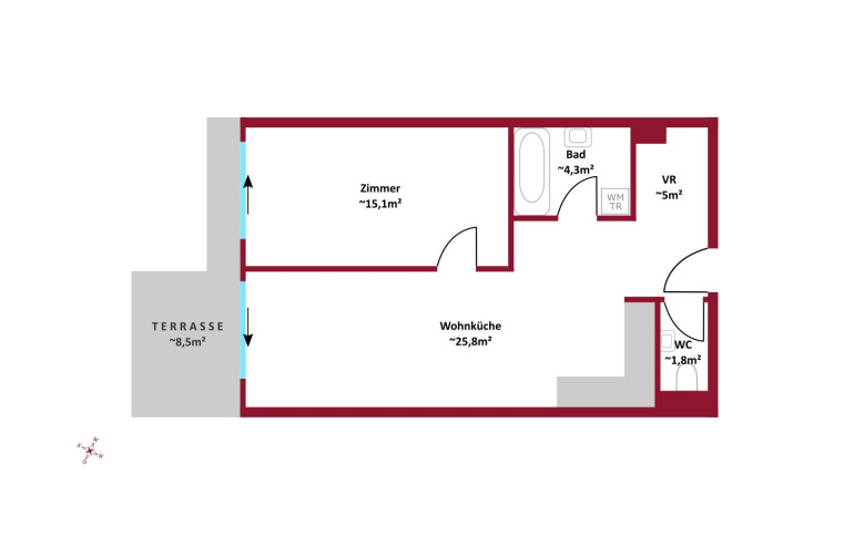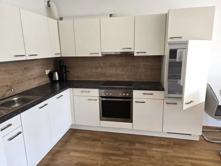 - Wohnzimmer mit offener Küche, ca. 26 m2 (moderne, neue Ausstattung und Echtholzparketten)