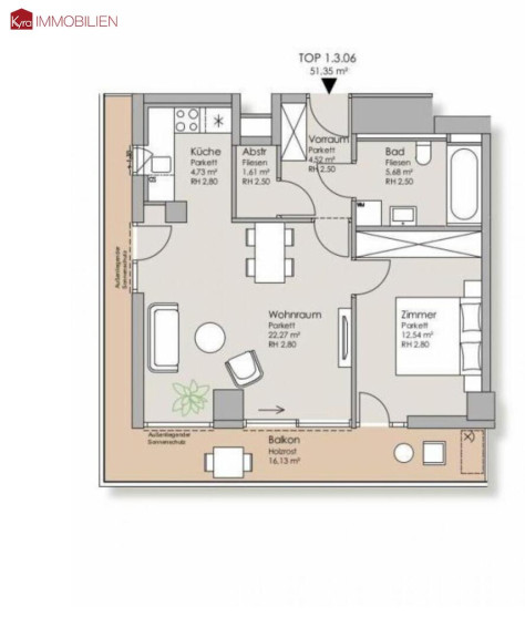 Moderne 2-Zimmer Wohnung mit Balkon im TRIIIPLE