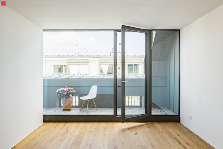 Das stilvolle Gründerzeithaus mit seiner kunstvoll gegliederten Fassade, wurde mit großer Sorgfalt und Respekt aufgestockt. Im Fokus stand nicht die maximale Ausnutzung der Fläche, sondern ein kompromissloser Anspruch an Qualität, Ästhetik und Wohnkomfort.