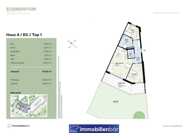 Wohnen bedeutet mehr als nur ein Ort zum Leben. Es bedeutet Lebensqualität, Gemeinschaft und Wohlbefinden. Mit ELEMENTUM entsteht in Marchtrenk ein modernes Wohnbauprojekt mit hochwertigen Eigentumswohnungen, das urbanen Komfort mit naturnahem Wohnen verbindet. Insgesamt umfasst das Projekt vier Wohnhäuser, von denen bereits drei erfolgreich an Großinvestoren verkauft wurden. Aktuell gelangt Haus 4 in den freien Verkauf.