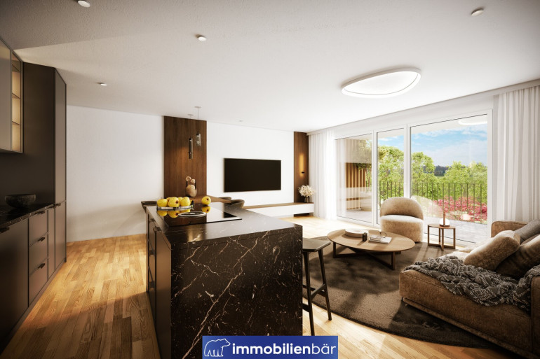 Großzügige Freiflächen wie Balkone, Terrassen und Eigengärten sowie lichtdurchflutete Räume schaffen eine angenehme Wohnatmosphäre.