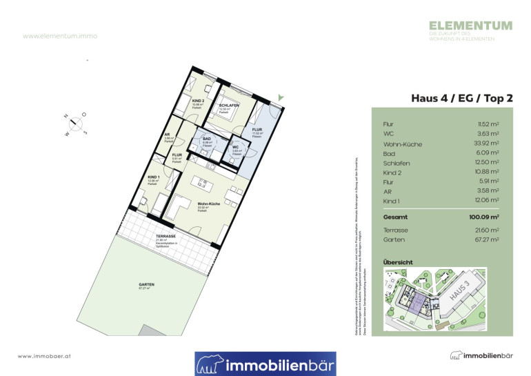 Wohnen bedeutet mehr als nur ein Ort zum Leben. Es bedeutet Lebensqualität, Gemeinschaft und Wohlbefinden. Mit ELEMENTUM entsteht in Marchtrenk ein modernes Wohnbauprojekt mit hochwertigen Eigentumswohnungen, das urbanen Komfort mit naturnahem Wohnen verbindet. Insgesamt umfasst das Projekt vier Wohnhäuser, von denen bereits drei erfolgreich an Großinvestoren verkauft wurden. Aktuell gelangt Haus 4 in den freien Verkauf.