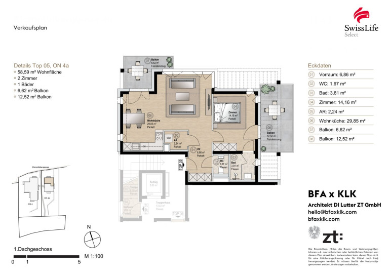Mit rund 58 m² Wohnfläche und einer großzügigen Außenfläche bietet diese Wohnung eine perfekte Kombination aus kompakter Eleganz und hochwertigem Wohnkomfort.