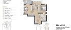 Auf rund 55,56 m² Wohnfläche entfaltet sich ein modernes Wohnkonzept mit offenem Wohnbereich und direktem Zugang zur 7,38 m² großen Freifläche, die zusätzlichen Lebensraum im Freien bietet.