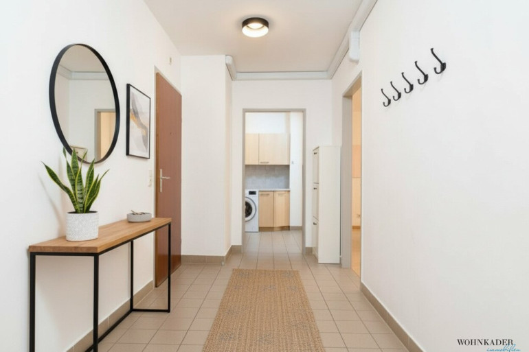 Beim Betreten empfängt Sie ein großzügiger, offener Vorraum, von dem aus alle Räume separat begehbar sind – ideal für Familien oder Paare mit Platzbedarf. Der geräumige Wohnbereich mit offen gestalteter Eckküche bietet eine gemütliche Wohlfühlzone und lädt zum Entspannen oder gemeinsamen Kochen ein.
