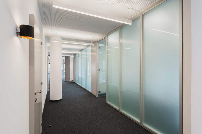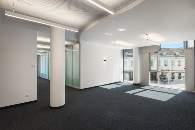 Die Bürofläche verfügt über grosszügige teils bodentiefe Fensterflächen und ist dadurch rundum natürlich belichtet. Das Office wurde für die künftigen Mieter renoviert. Raumweise Kühlung und teilweise ausliegende Beschattungen sorgen für angenehmes Klima in den warmen Monaten.