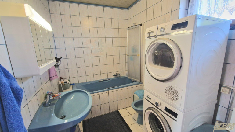 Bereits beim Betreten überzeugt das Haus durch eine durchdachte Raumaufteilung und eine hochwertige Ausstattung. Fliesen, Laminat und Parkett schaffen eine harmonische Wohnatmosphäre. Die Einbauküche lädt zum Kochen und Verweilen ein, während das Badezimmer mit Fenster und Badewanne für entspannte Momente sorgt.
