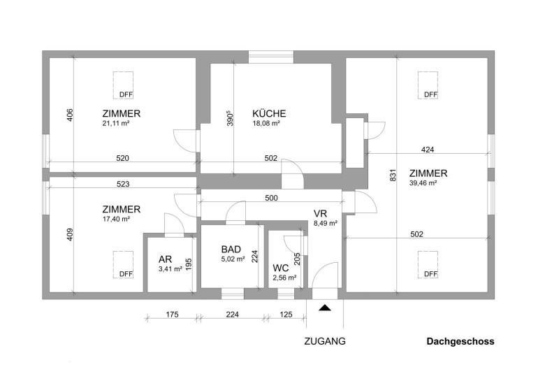 Dachgeschoss: 114,67qm und befristet vermietet bis 31.12.2030 (Jahresnettomiete EUR 10.506,24)
