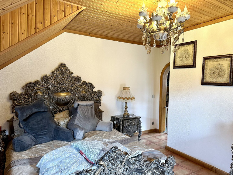 Obergeschoss: Neben Küche, Bad und drei Schlafzimmern erwartet Sie ein lichtdurchfluteter Wohnbereich mit Kamin und eigener Bar – ein Ort zum Entspannen und Genießen.
