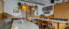 * Stehtische und Sitzplätze im Gastroraum mit Theke