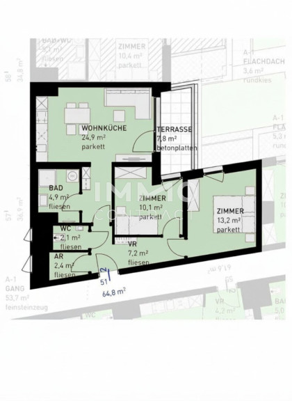 - Schlüsselfertige Ausführung mit hochwertigen Parkettböden und Fliesen