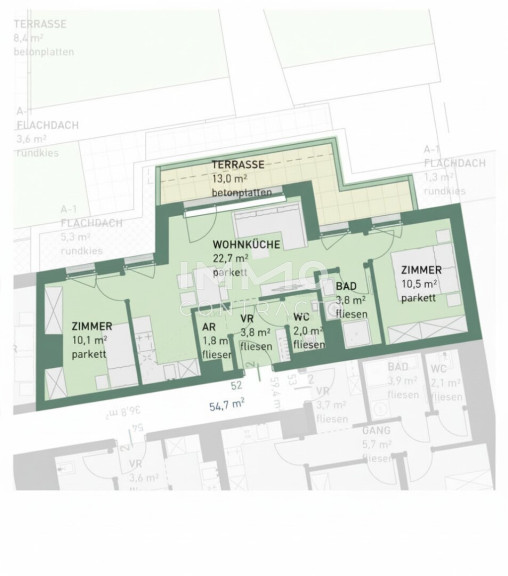 - Jede Wohnung mit privater Freifläche (Loggia, Balkon, Terrasse, Eigengarten)