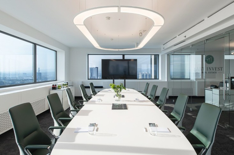 Darüber hinaus können Sie im FIRST BUSINESS & CONFERENCE CENTER hochwertige Konferenz- und Meetingräume mit moderner Ausstattung für bis zu 60 Personen anmieten. Der Millennium Tower verfügt über 50 Stockwerke und ca. 43.000 m² Bürofläche.