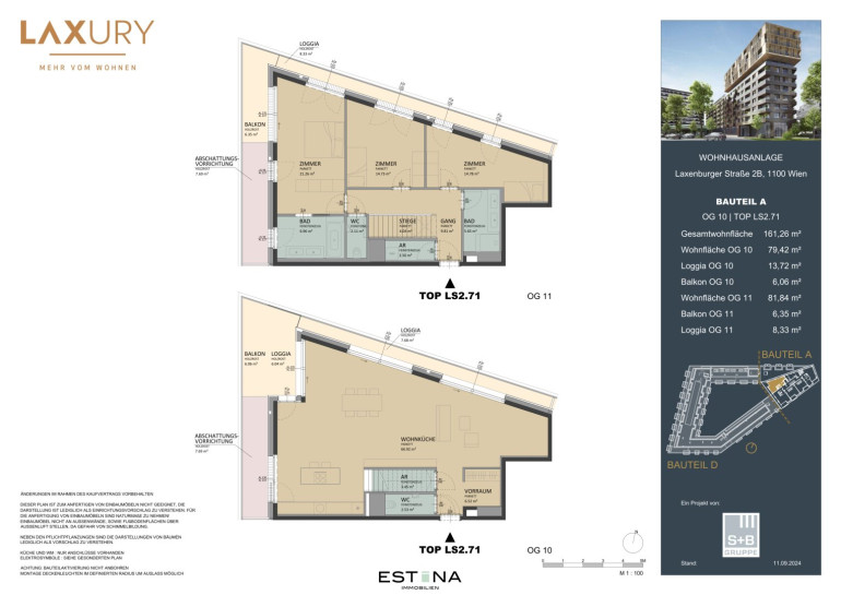 Mit seiner Mischung aus Wohnung und Büro nimmt LAXURY den Grundgedanken moderner Stadtentwicklung auf: Vielfalt mit Mehrwert. Im Fokus stehen 80 moderne, klug geschnittene Eigentumswohnungen mit einer Größe von ca. 30 m2 bis ca. 180 m2 mit 1 - 4 Zimmer. Die oberen Stockwerke bieten einen sensationellen Blick über die Stadt.
