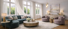 Große Fensterflächen lassen viel Tageslicht in die Räume und betonen das elegante Altbau-Flair in Kombination mit moderner Ausstattung.