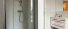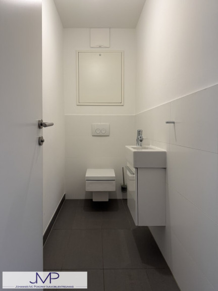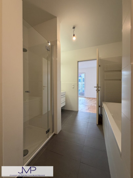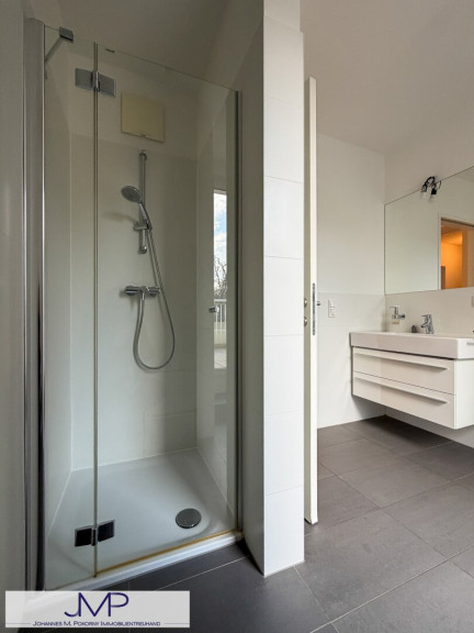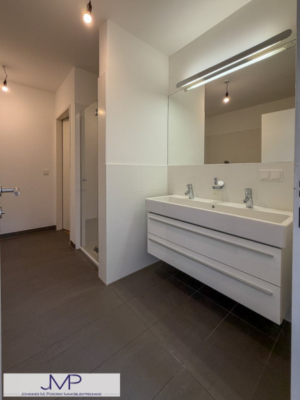 Das hochwertig ausgestattete Badezimmer, das direkt an das Schlafzimmer anschließt, verfügt über Badewanne und Dusche, sowie ein eigenes WC und einen praktischen Handtuchtrockner. Das zweite Badezimmer ist mit Dusche und Waschmaschinenanschluss ausgestattet. Zusätzlich steht ein separates Gäste-WC zur Verfügung.