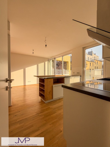 Die hochwertig ausgestattete Drei-Zimmer-Wohnung überzeugt durch eine durchdachte Raumaufteilung und großzügige Freiflächen. Herzstück der Wohnung ist die große Wohnküche mit anschließendem, weitläufigem Wohnzimmer.
