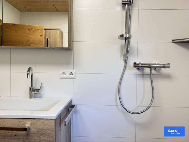 Parkett, Fliesen, Zentralheizung, Einbauküche, Westbalkon, Bad mit Fenster, Badewanne, Dusche, Carport