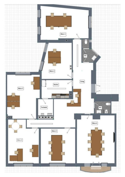 Zur Vermietung steht ein großzügiges Büro mit insgesamt 209 m2 Nutzfläche im 1. Obergeschoss, welches durch die insgesamt 6 Bürozimmer besonders viel Platz und Flexibilität bietet.