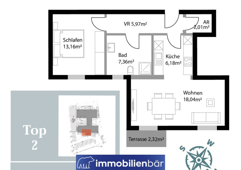 - Terrasse mit ca. 2,32 m², ideal zum Entspannen