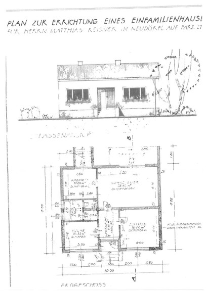 ERDGESCHOSS: Vorraum, Küche mit Essplatz, Wohnzimmer mit Ausgang auf die überdachte Terrasse, Schlafzimmer, Kinderzimmer, Bad, WC;