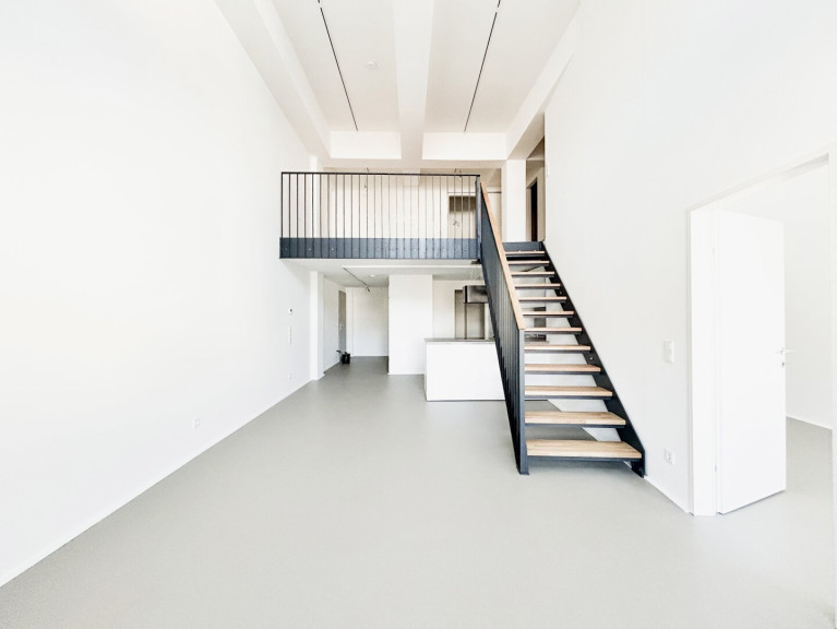Stylvolle Erstbezugs-Loftwohnung mit ca. 4,90 m Raumhöhe, Galerie und lichtdurchfluteten Räumen in einem revitalisierten Gebäude, direkt gegenüber dem Floridsdorfer Markt gelegen.