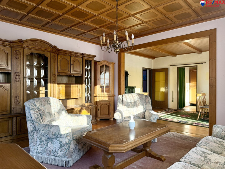 Die Raumaufteilung umfasst insgesamt 5 Zimmer, ergänzt durch 2 Küchen und 2 Badezimmer, wodurch sich das Haus auch ideal für Mehrgenerationenwohnen oder eine Kombination aus Wohnen und Arbeiten eignet