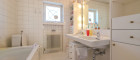 Das Obergeschoss ist klassisch angelegt und ist über eine gewendelte Holzstiege erreichbar. Es beherbergt drei Schlafzimmer, von welchem eines den Austritt auf kleinen Balkon freigibt. Auf dieser Etage befinden sich weiters noch zwei Badezimmer, eines mit Dusche und eines davon mit Badewanne und WC.