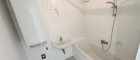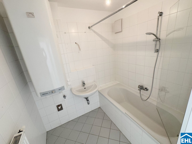 - Badezimmer mit Badewanne und Waschmaschinenanschluss