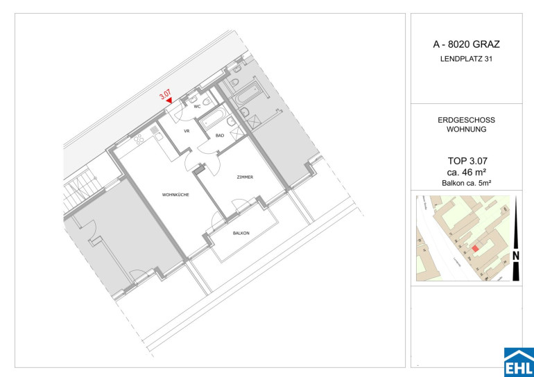 Der Lendplatz befindet sich im Grazer Stadtteil Lend, einem lebendigen und urbanen Viertel, das sich durch eine Mischung aus historischen Gebäuden und modernen Einrichtungen auszeichnet. Der Platz liegt in unmittelbarer Nähe zum Lendplatz, einem wichtigen Verkehrsknotenpunkt in Graz, und ist von verschiedenen Geschäften, Cafés und Restaurants umgeben. Die Anbindung an öffentliche Verkehrsmittel ist hervorragend, und die Altstadt sowie das Grazer Stadtzentrum sind ebenfalls schnell erreichbar. Der Lendplatz genießt eine zentrale Lage mit hoher Fußgängerfrequenz und bietet sowohl für Anwohner als auch für Besucher eine attraktive Umgebung.