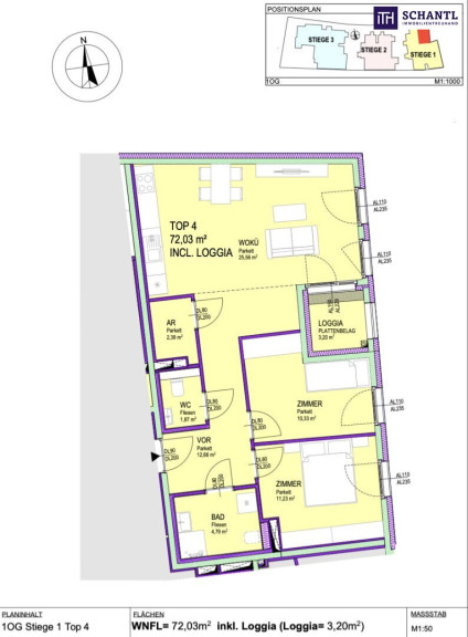 Wohnfläche: ca. 73,14 m² + Kellerabteil