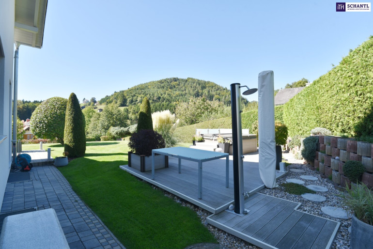 In ruhiger, naturnaher Umgebung nahe Sankt Bartholomä und nur etwa 15–20 Minuten von Graz entfernt, erwartet Sie dieses außergewöhnliche Einfamilienhaus, ideal für alle, die die perfekte Balance zwischen Stadtnähe und Erholung im Grünen suchen. Das Herzstück des Hauses bildet die moderne Erdwärme-Heizung in Kombination mit einer Photovoltaikanlage. Dieses nachhaltige Energiekonzept ermöglicht nahezu autarkes Wohnen bei gleichzeitig äußerst niedrigen Betriebskosten von nur ca. € 220 monatlich, inklusive Strom, Heizung und Wellnessbereich. Der großzügige, lichtdurchflutete Wohnbereich mit direktem Zugang zur Terrasse und in den liebevoll angelegten 981 m² großen Garten schafft ein einzigartiges Wohngefühl. Hier genießen Sie Ruhe und Privatsphäre und erreichen gleichzeitig die Stadt Graz in kurzer Fahrzeit. Ein exklusiver Wellnessbereich mit Sauna, Infrarotkabine und Whirlpool, hochwertige Ausstattung wie Kaminofen, Klimaanlage und moderne Haustechnik sowie die durchdachte Raumaufteilung machen dieses Haus zu einem echten Wohntraum.