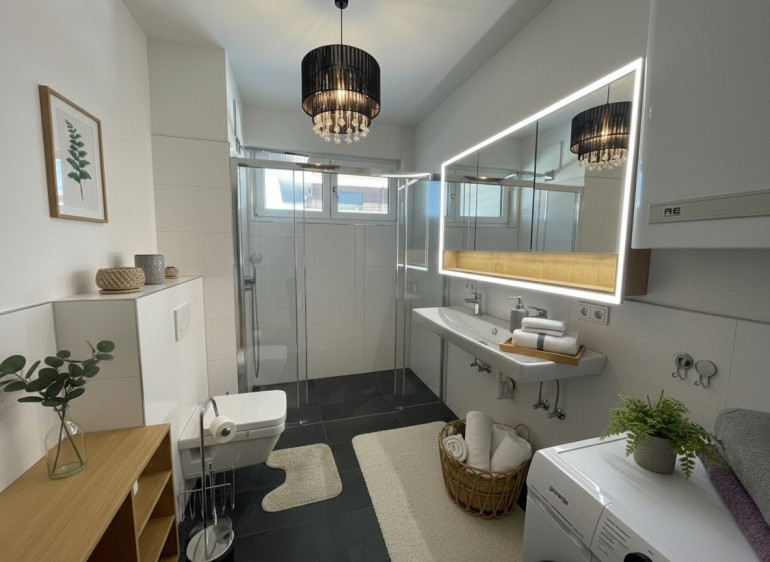 Fußbodenheizung, Zentralheizung, Personenaufzug, Bad mit Fenster, Dusche