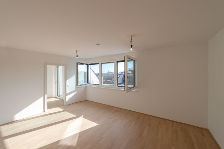 Zur befristeten Vermietung gelangt diese helle, toll aufgeteilte und sehr hochwertig ausgestattete ca. 58 m² große Neubauwohnung mit Balkon im 5. Stock eines jetzt fertiggestellten Neubaus in absoluter Bestlage im 06. Wiener Gemeindebezirk, unmittelbar beim Haus des Meeres gelegen.