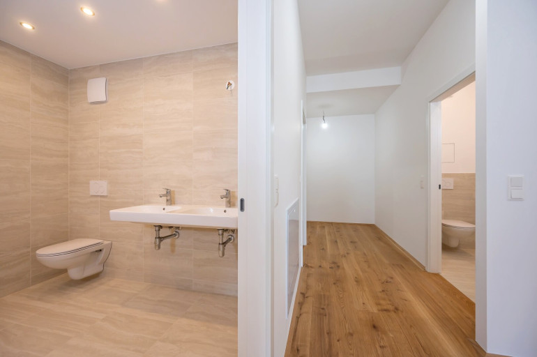 Parkett, Fliesen, Fußbodenheizung, Personenaufzug, Dusche