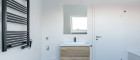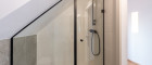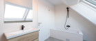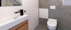 Mit dem Lift fahren Sie bequem in den ersten Stock. Sie betreten die Wohnung und spüren sofort: alles ist neu, alles ist ruhig, alles passt zusammen. Rechts befindet sich ausreichend Platz für Garderobe und Jacken. Links liegt das moderne Badezimmer mit extra Toilette, klar gestaltet, hochwertig ausgeführt.