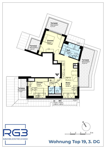 LUXUS DG-Wohnung in 1220 Wien: Erstbezug mit 4 Terrassen für 720.000 €!