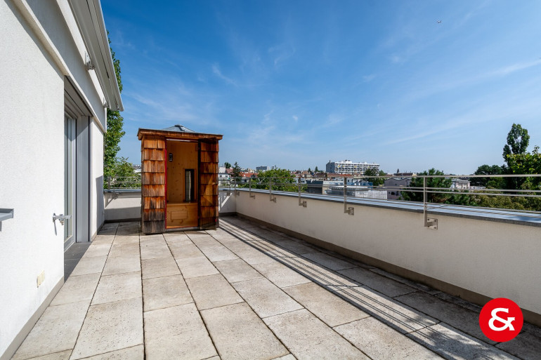 Durch die Alleinlage im Dachgeschoss genießt man jede Menge Privatsphäre, absolute Ruhe und garantierten Wohnkomfort auf höchster Ebene sowie wunderbare Lebensqualität. Auf den großflächigen, sonnigen Terrassen, die sich auf der Wohnebene befinden, erleben Sie schöne Stunden und genießen einen einzigartigen Ausblick.