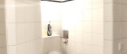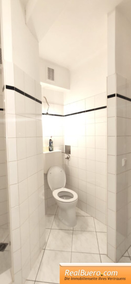 - Badezimmer mit Dusche, Toilette und Waschmaschinenanschluss