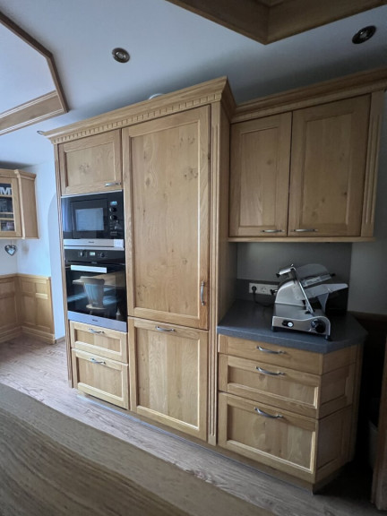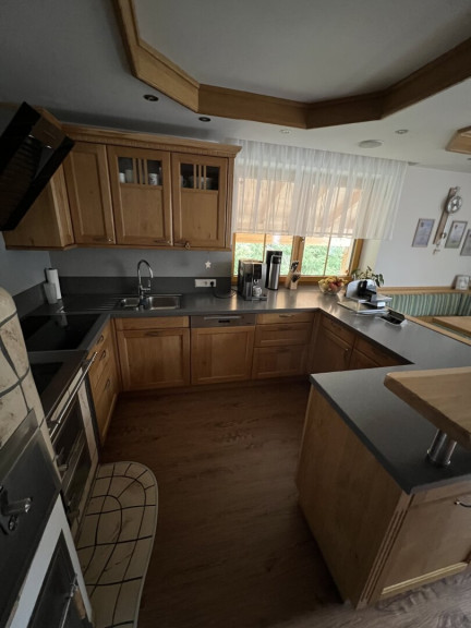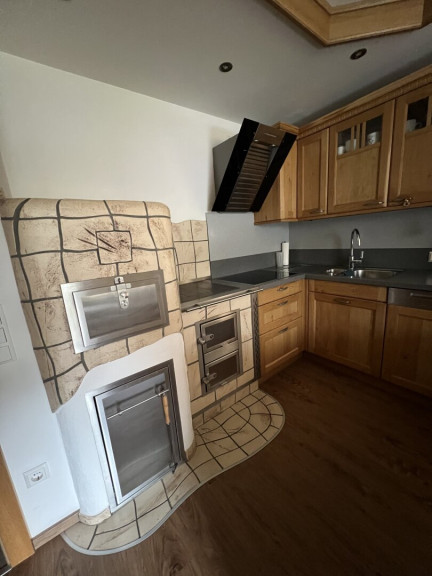 Im Inneren des Hauses befinden sich drei Tischherde, von denen zwei mit einem traditionellen Kachelofen ausgestattet sind. Diese Details verleihen dem Haus nicht nur einen nostalgischen Charme, sondern sorgen auch für eine behagliche Atmosphäre.