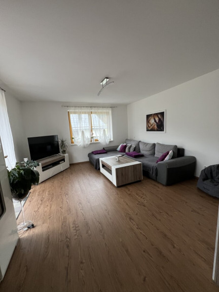 Raumaufteilung: Diele, WC mit Fenster, Bad mit Dusche und Fenster, 2 Zimmer, Wohnzimmer mit Zugang zum ostseitigen Balkon, Küche mit Zugang zum ostseitigen Balkon - Wohnung über der Garage (Neubau 2019): ca. 74 m² Wohnfläche und ca. 37 m² großer südseitigen Terrasse