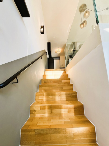 - Böden: Hochwertiger Echtholzparkett Eiche, Fliesen