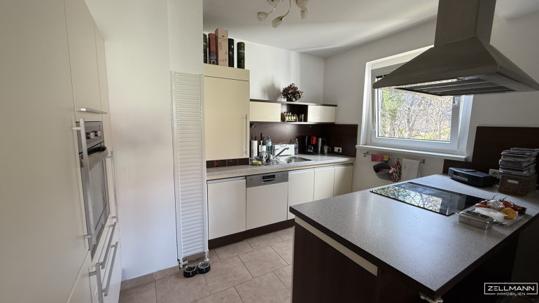 Die offene Küche integriert sich harmonisch und schafft eine zeitgemäße Wohnatmosphäre.