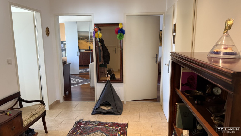 Die Wohnung wurde 2008 generalsaniert und präsentiert sich in gepflegtem Zustand. Hochwertige Parkett- und Steinböden, eine Gasetagenheizung sowie ein stilvoller Kachelofen unterstreichen die solide Basis.