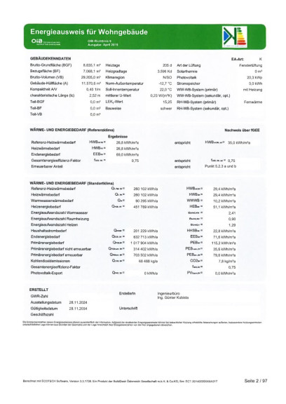 | Heizwärmebedarf: | 29,40 kWh/m²a |