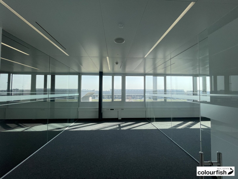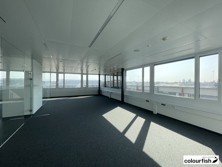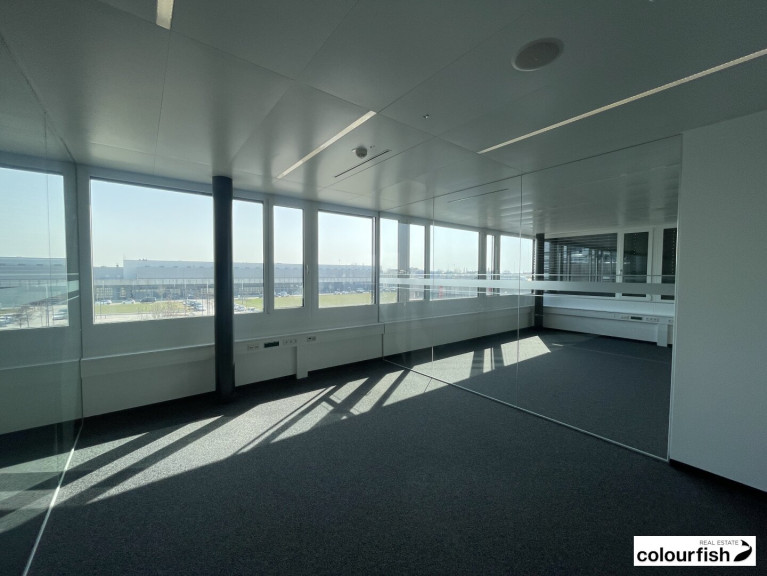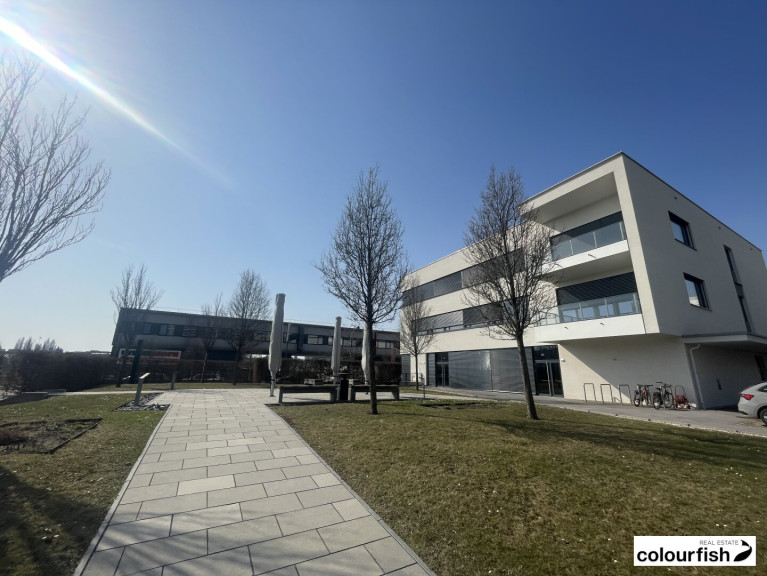 In einem modernen und sehr gepflegten Büroneubau kommt diese Bürofläche mit ca. 214 m² sowie einem eigenen Balkon zur Vermietung. Die Fläche liegt im 2. OG und ist über das Liftstiegenhaus erreichbar. Der Grundriss gliedert sich in einen großzügigen Sozialraum mit eigener Terrasse und ausgestatteter Teeküche, einen Empfangsbereich, zwei kleinere Büroräume sowie einen größeren Büroraum. Im Empfangsbereich sowie im Besprechungsraum gibt es eine Bodendose, die übrige IT Verkabelung wird über Fensterbank-Kabelkanäle geführt. Durch einen sehr hohen Glasanteil ist das Büro sehr hell und freundlich. Alle Räume verfügen über eine mechanische Be- und Entlüftung sowie eine akustische Kühldecke mit integrierter Bürobeleuchtung.