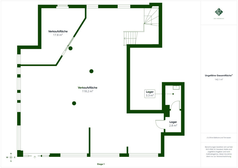 - Ca. 150 m² helle und einladende Geschäftsfläche