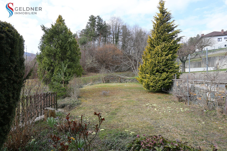 Auf der Terrasse sitzend genießt man den Garten, der direkt an den Wald grenzt. Also idyllische Ruhelage.