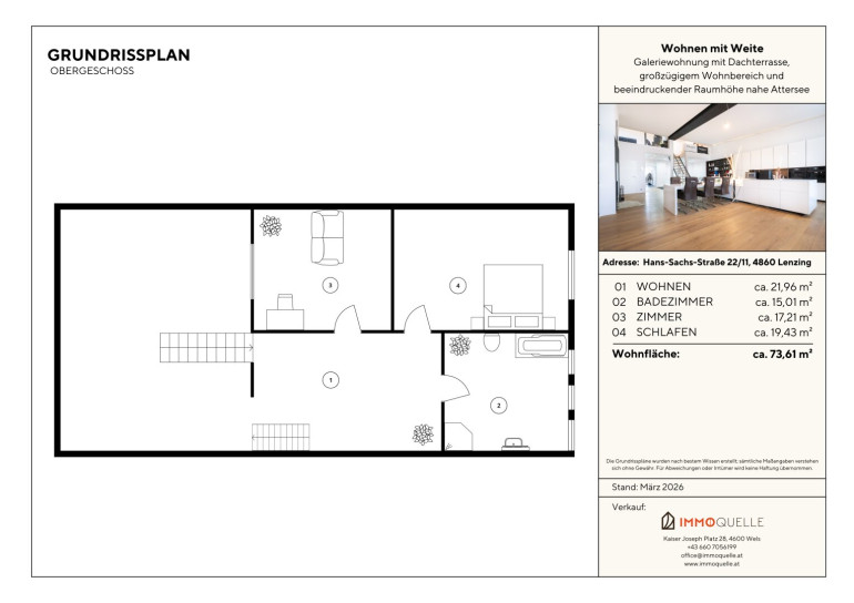 Galeriewohnung mit Dachterrasse, großzügigem Wohnbereich und beeindruckender Raumhöhe nahe Attersee